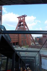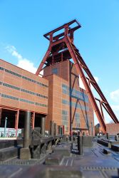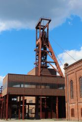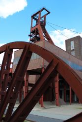 | Die Zeche Zollverein war von 1851 bis 1986 ein aktives Steinkohlebergwerk. Sie ist heute Architektur- und Industriedenkmal und seit 2001 Welterbe der UNESCO. Der Haupteingang mit dem bekannten Blick von vorne auf das Doppelbock-Fördergerüst liegt an der Gelsenkirchener Straße 181. Nach der Stilllegung 1986 kaufte das Land Nordrhein-Westfalen der Ruhrkohle AG das Gelände ab, welches bereits zur Stilllegung unter Denkmalschutz stand. Das größte flächenmäßige Denkmal der Stadt Essen beherbergt heute verschiendene Kunst und Kulturausstellungen, sowie Restaurants und Cafés. |